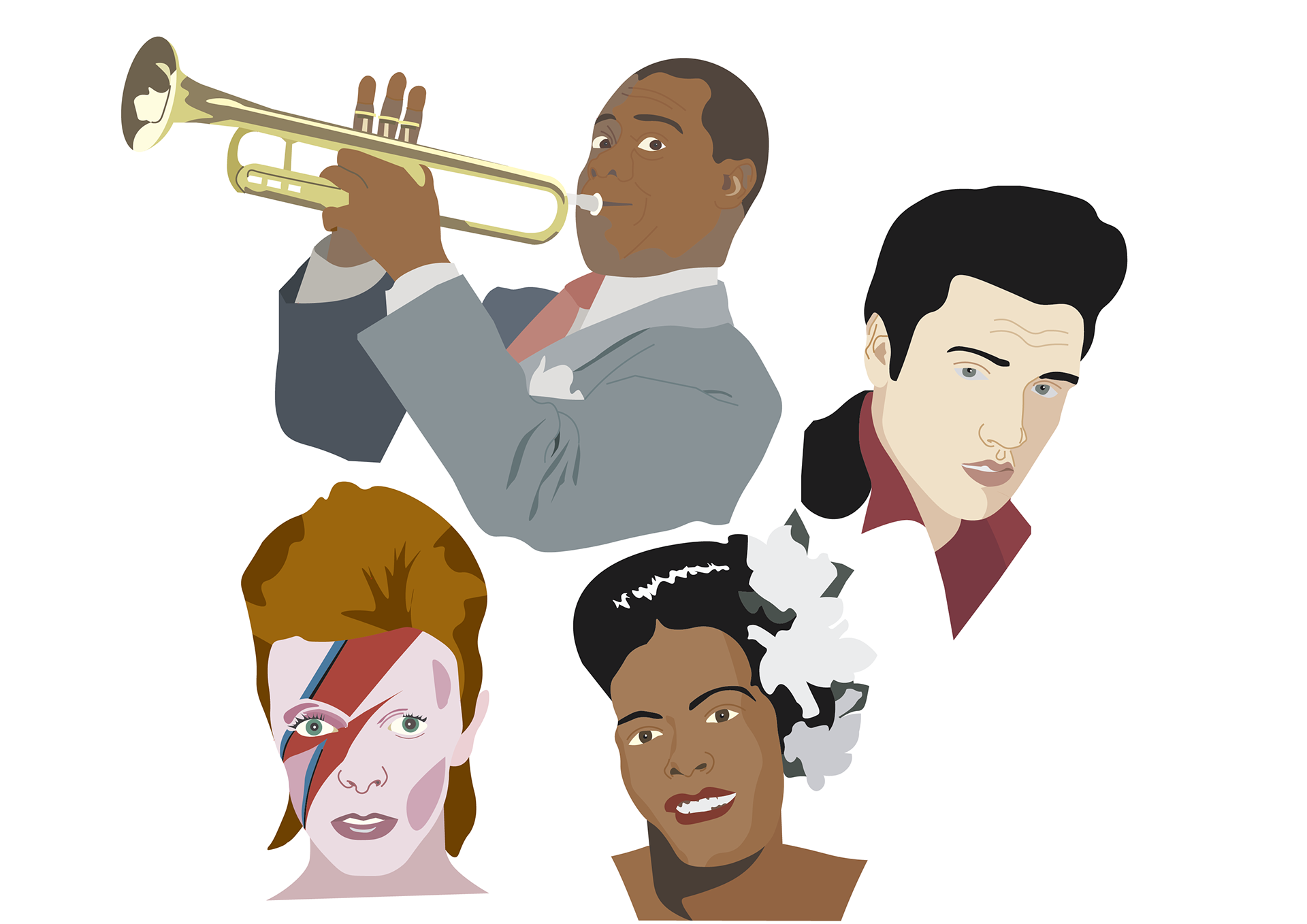Compilation of Elvis Presley, Louis Armstrong, David Bowie and more